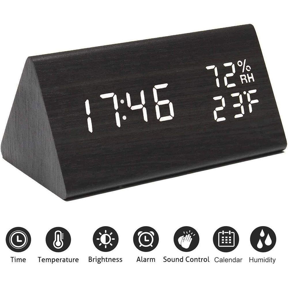 The clock features adjustable brightness levels to cater to your comfort level. You can turn off the LED light, keep it sound sensitive, or adjust the brightness level to your liking. Also, with its temperature and humidity sensor, the clock can monitor the indoor temperature and humidity, making it a perfect companion to help protect your health.