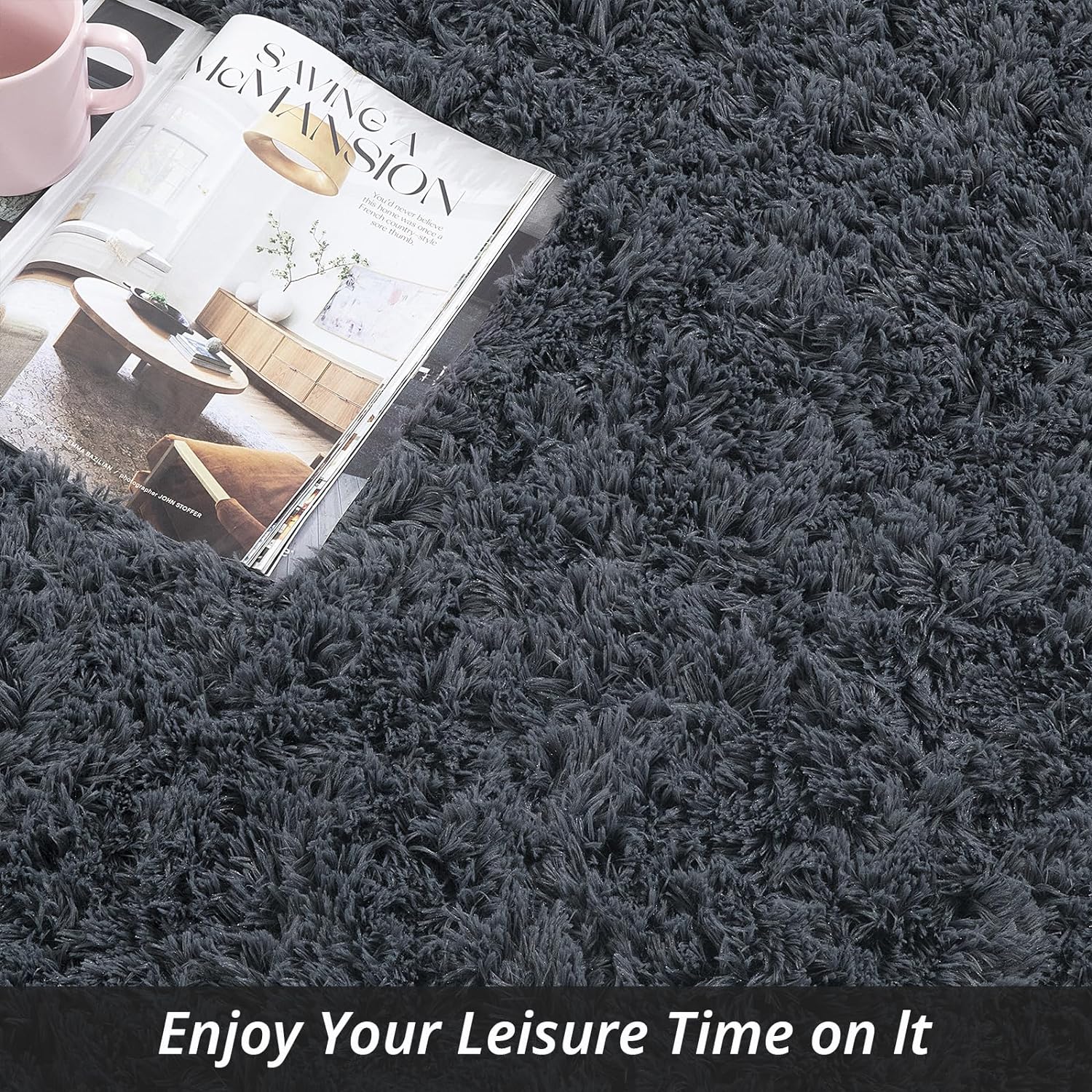 - 【Design for Modern Life】 This shag rug is the focal point of home decor! The simple and stylish grey color design creates a warm and comfortable atmosphere, creating a new luxurious place for your life, and the softest touch will make you feel incredibly relaxed.